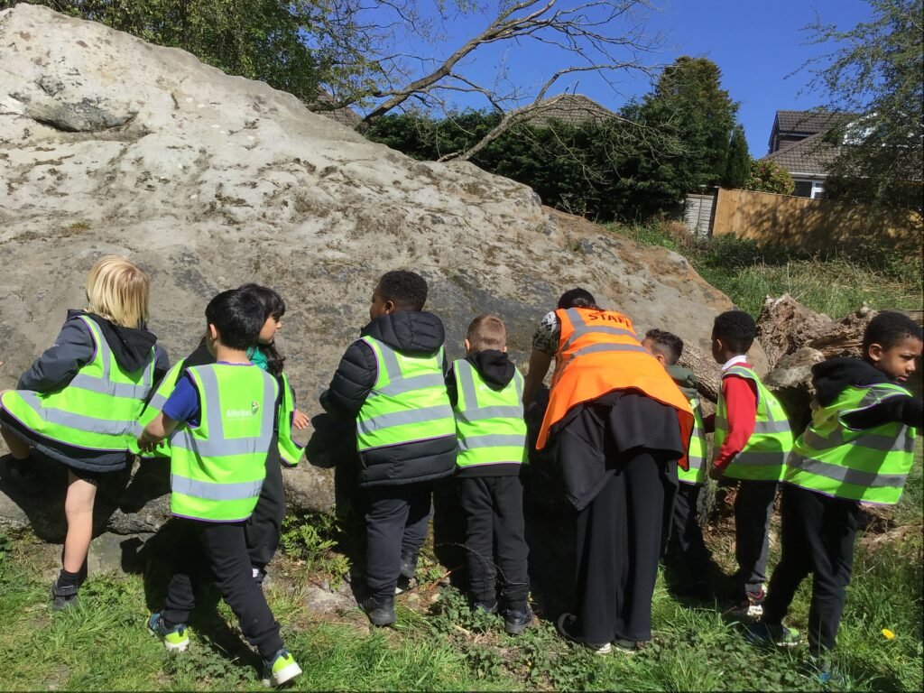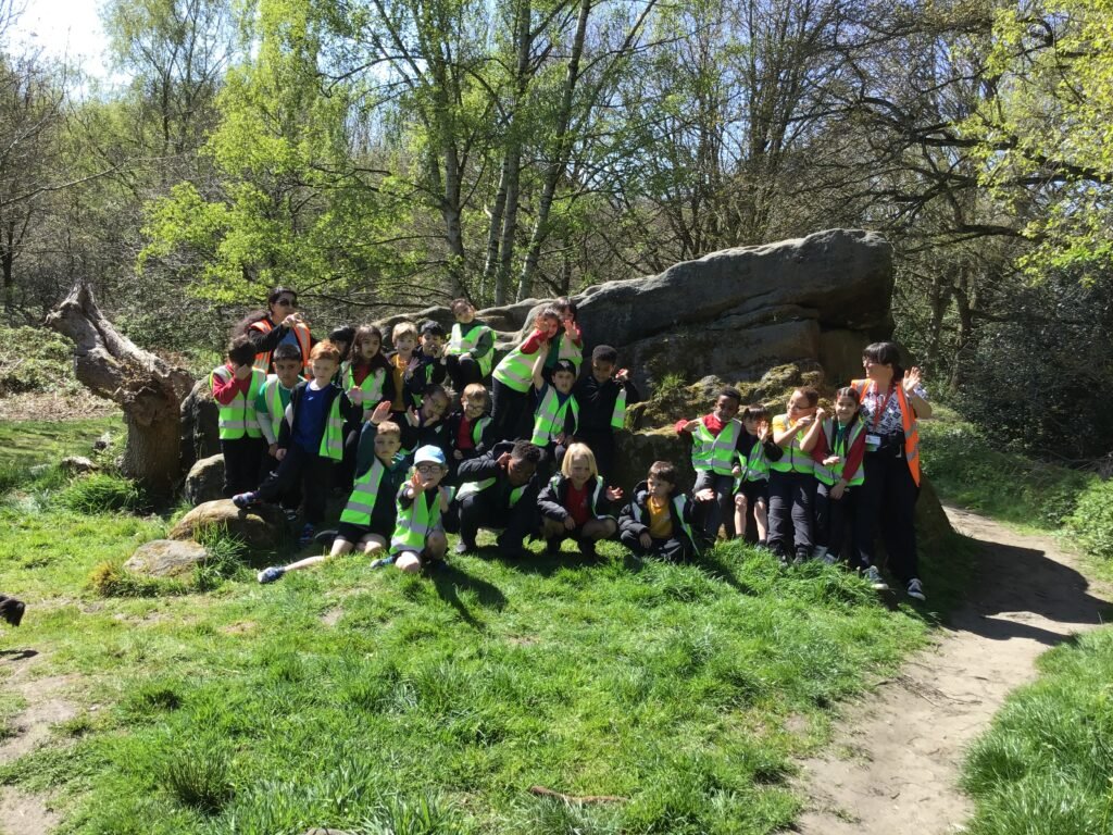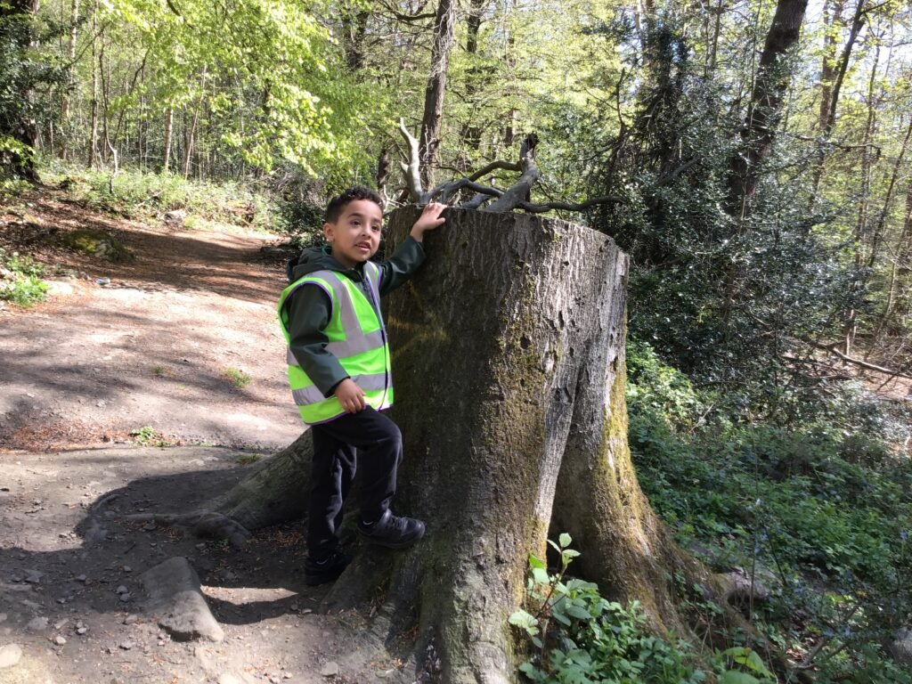 As soon as we entered the woods we listened carefully to the birds singing in the trees. The trees were tall and we started to notice woodland plants, especially bluebells.